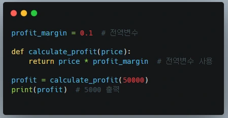 • 함수 외부에서 정의되어 프로그램 전체에서 접근 가능한 변수입니다.